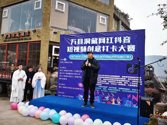 开幕式最后,我校熊泽明院长和酒窖窖主熊德辉先生共同宣布“万县洞藏网红抖音短视频创意打卡大赛”正式开始!