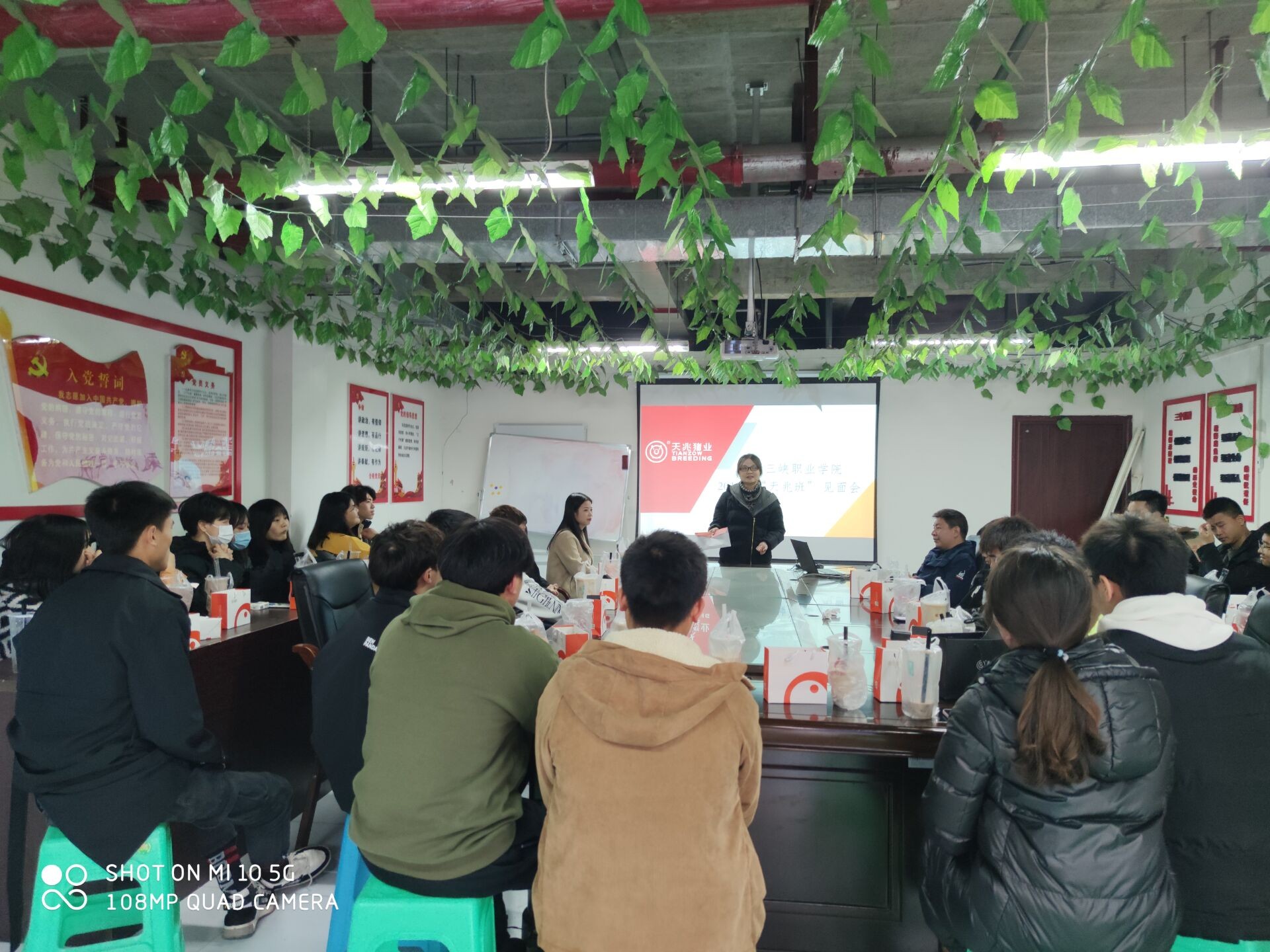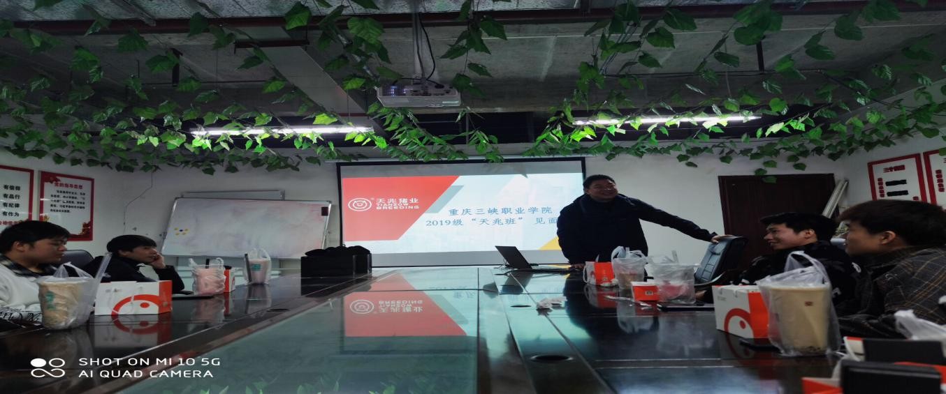 2020年12月11日下午,金年会app畜牧兽医专业2019级学徒制“天兆班”见面会在动科楼120召开,天兆猪业有限公司人事部夏经理、学徒制天兆班企业班主任刘平老师、动物科技学院母治平老师、辅导员唐弋钦老师及2019级“天兆班”全体同学参加会议。