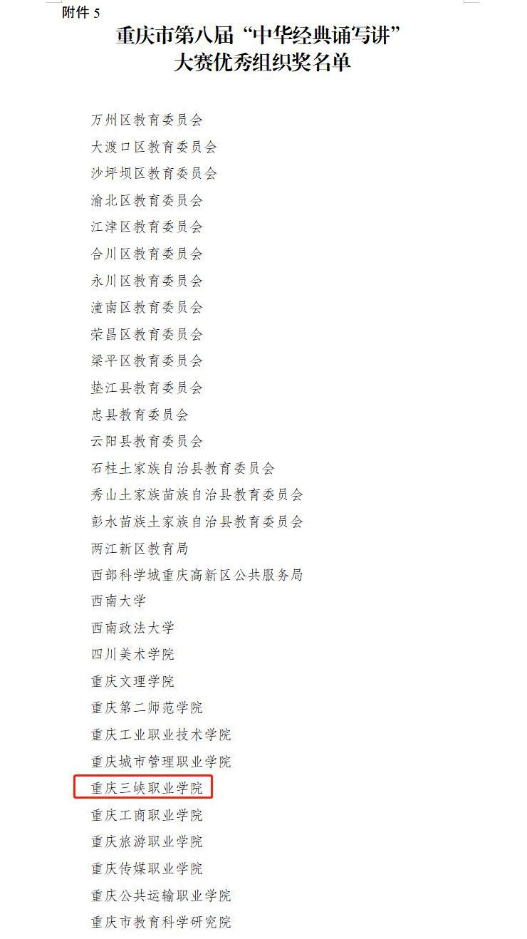 我校获重庆市第八届“中华经典诵写讲”大赛奖励名单