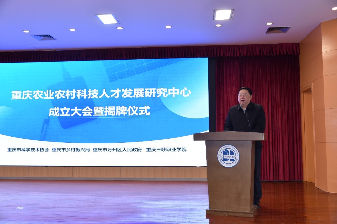 3月24日,重庆农业农村科技人才发展研究中心成立大会暨揭牌仪式在学院沙龙校区举行。重庆农业农村科技人才发展研究中心由市科协、市乡村振兴局、万州区人民政府与我院四方共建。市科协党组书记、常务副主席王合清,区委常委、区政府副区长王建平,学院党委书记陈章、院长李炯光、副院长赵福奎参加成立大会,并为重庆农业农村科技人才发展研究中心揭牌,会议由李炯光院长主持。