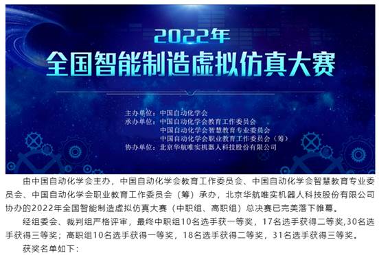 我院学子荣获2022年全国智能制造虚拟仿真大赛(高职组)一等奖