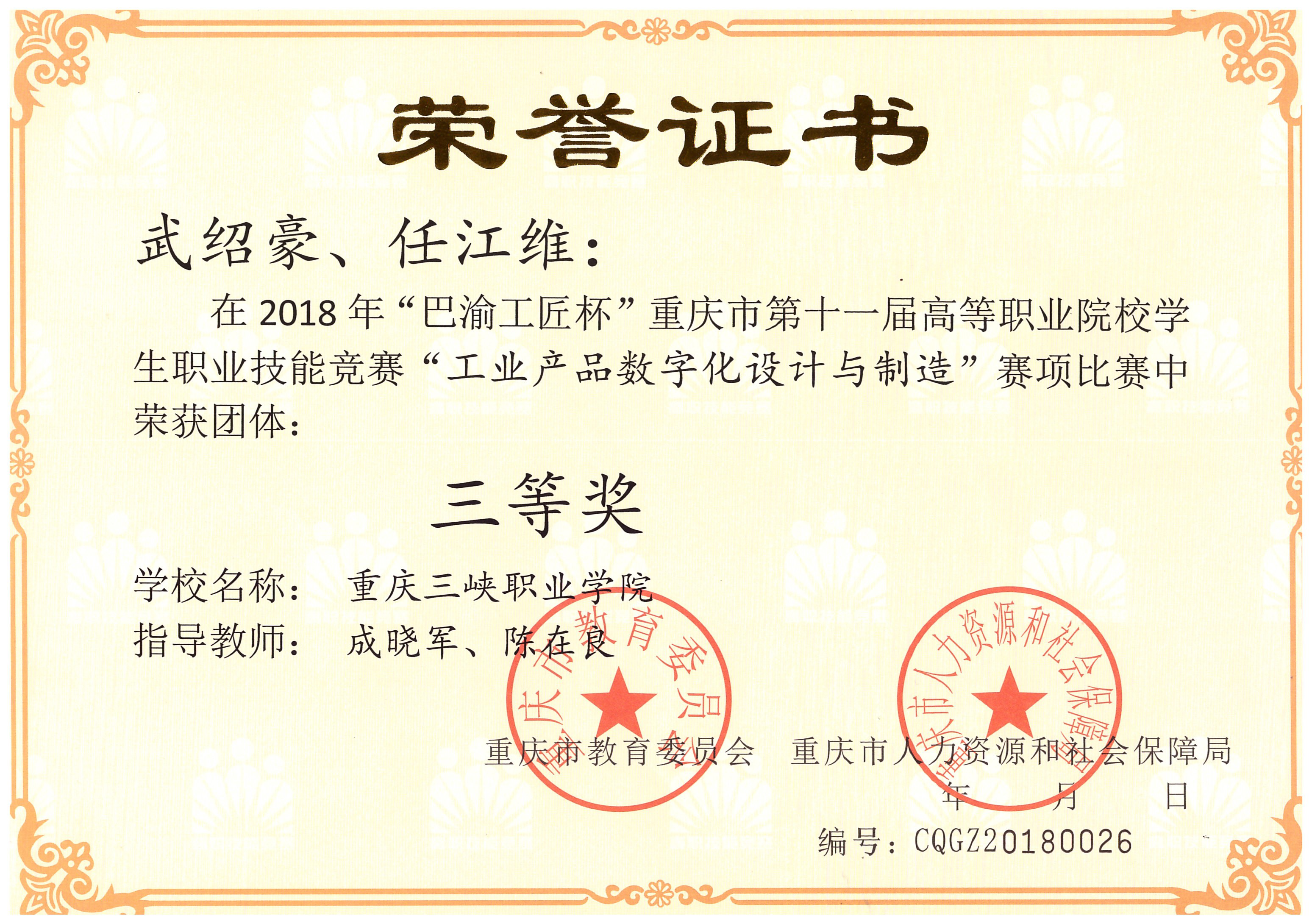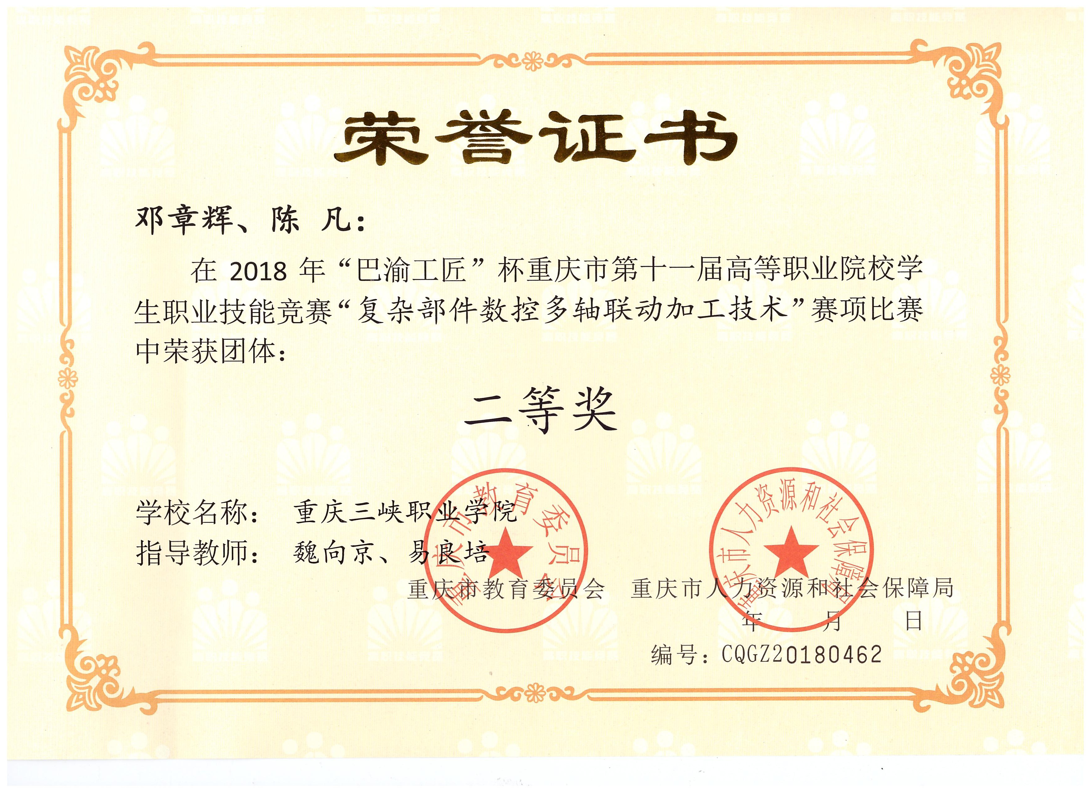重庆市第11届复杂部件数控多轴联动加工技术团体二等奖