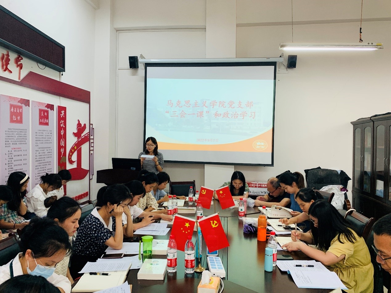 9月7日下午,马克思主义学院党支部在博雅楼109室开展“三会一课”和政治理论学习。会议由党支部副书记丁翠娟主持。会上,集中学习了习近平在省部级主要领导干部“学习习近平总书记重要讲话精神迎接党的二十大”专题研讨班上重要讲话精神、习近平向世界职业技术教育发展大会致贺信、习近平总书记在全国宣传思想工作会议上的重要讲话精神等内容;对《习近平谈治国理政》第三卷(第十八专题:推动共建“一带一路”走深走实)进行.....