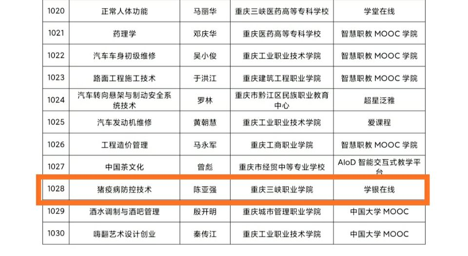 2023年1月,教育部办公厅公布了2022年职业教育国家在线精品课程名单,我院动物科技学院陈亚强老师主持的《猪疫病防控技术》成功入选国家级在线精品课程,取得了学院课程建设的新突破。