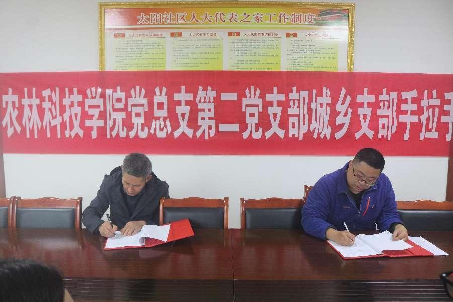 双方就进一步深化“城乡支部手拉手”结对共建工作展开,从太阳溪社区的基本情况、产业发展状况、农业产业发展瓶颈等方面进行了交流。通过交流,双方基本达成了组织联建、党员联育、资源联用、产业联谋、治理联抓的共建任务。吴琼同志表示,要结合双方的农业产业共性,在开展城乡产业结合发展的同时,一要做好联建,共同提高农业产业生产质量;二要充分发挥专业技术优势,促进服务当地农业产业;三要有效服务农民,将技术带到田间地头。吴琼、徐丹丹、左倩等同志结合农林科技学院专业特色和太阳溪社区发展实际情况提出了建议。最后,双方签订了支部共建协议。