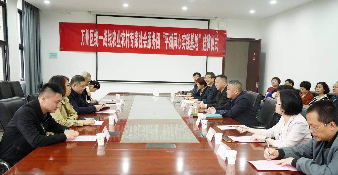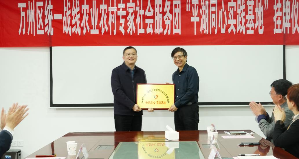 4月4日下午2点,学院党委统战部在行政楼312会议室举行了万州区统一战线农业农村专家社会服务团“平湖同心实践基地”挂牌仪式。会议由九三学社万州区委会副主委、秘书长张世平主持,九三学社万州区委会主委(区人大常委会副主任)骆继军,中共万州区委统战部副部长(区侨联主席、区委区政府台办主任、区政府侨务办主任)韦蜀泉,我院党委书记陈章、院长李炯光,九三学社金年会app支社全体社员和我院其他民主党派、知联会的专家代表参会。