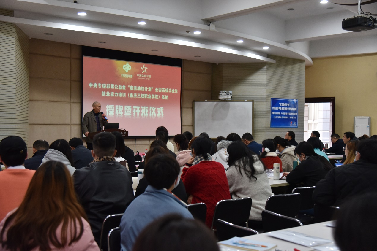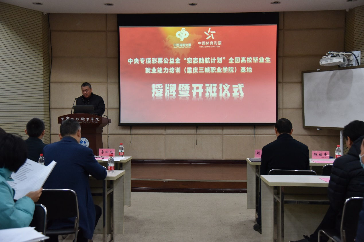 随后,重庆市大学中专毕业生就业指导服务中心唐雪平主任为我校教育部“宏志助航计划”全国高校毕业生就业能力培训(金年会app)基地授牌。