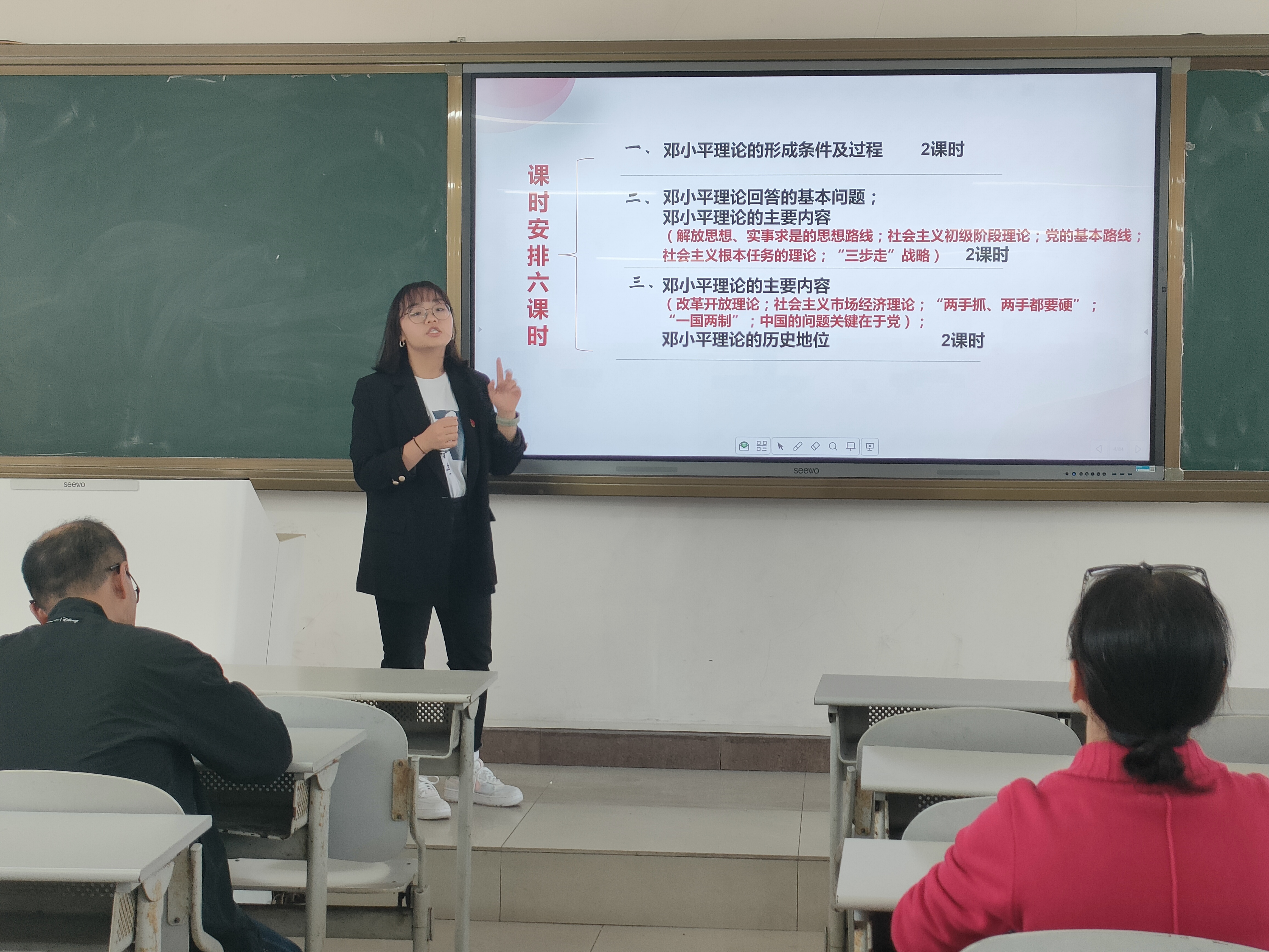 会议第二项,开展集体备课。本次备课会由秦敏老师主讲。秦老师围绕“邓小平理论创立和历史地位”这一主题,分别从“邓小平理论如何创立”、“邓小平理论的根问问题和主要内容是什么”、“如何认识邓小平理论的历史地位”三个部分进行精彩备课。