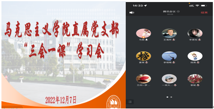 12月7日下午两点,马克思主义学院直属党支部以线上方式开展“三会一课”学习,会议由党支部副书记丁翠娟主持。