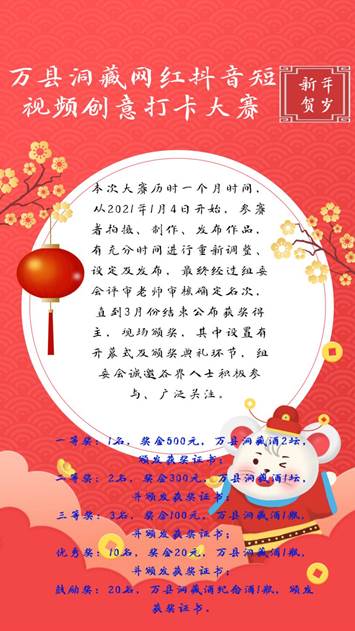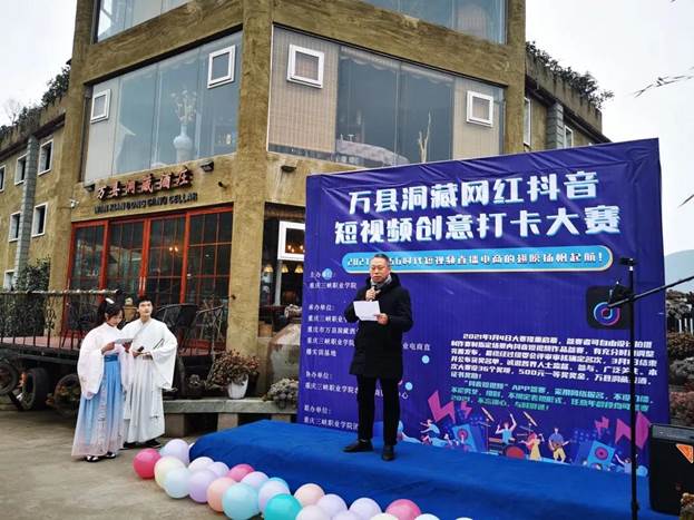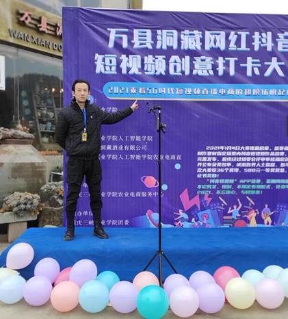 2021年1月4日上午10点,由我校金年会app主办,重庆金年会app、重庆市万县洞藏酒业有限公司、金年会app农业电商直播实训基地承办、重庆市万县洞藏酒业有限公司赞助,举办的“万县洞藏网红抖音短视频创意打卡大赛”