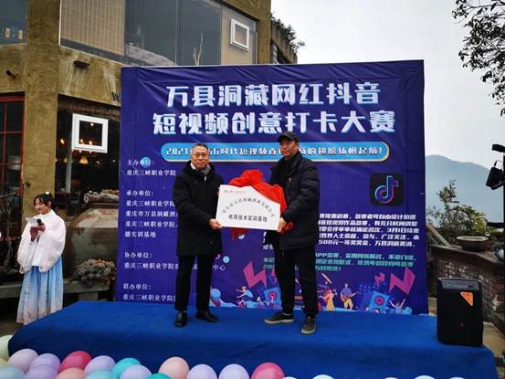 开幕式最后,我校熊泽明院长和酒窖窖主熊德辉先生共同宣布“万县洞藏网红抖音短视频创意打卡大赛”正式开始!