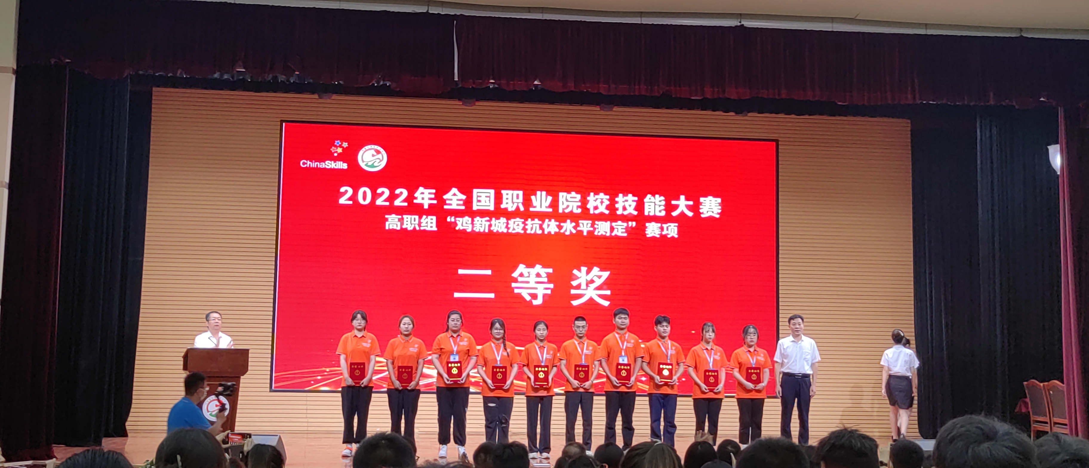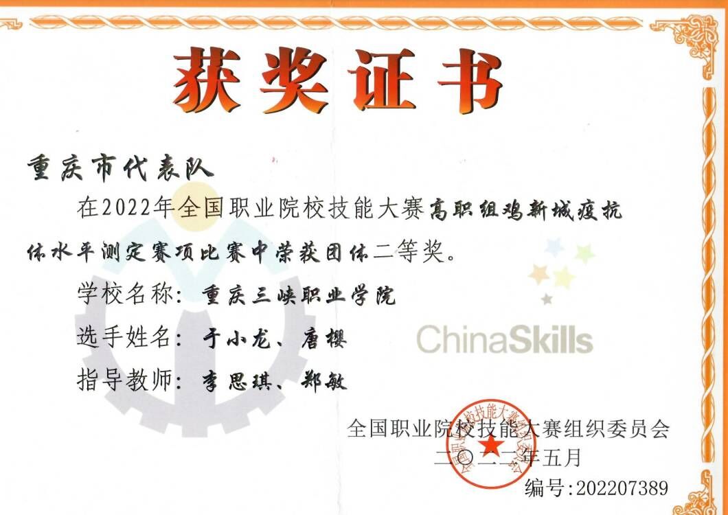 8月16至19日,2022年全国职业院校技能大赛高职组“鸡新城疫抗体水平测定”赛项在山东畜牧兽医职业学院举办。来自全国28个省份的51支代表队参加了比赛。我校参赛选手唐樱、于小龙发挥出色,喜获该赛项团体二等奖。
