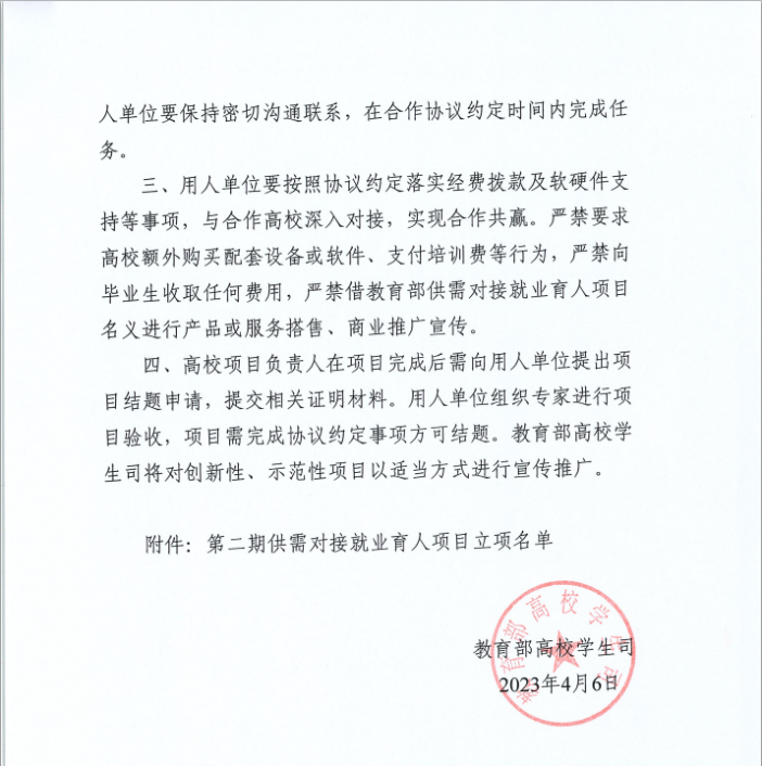 成功入选教育部第二期供需对接就业育人项目立项名单