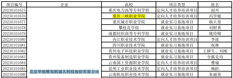 4月6日,教育部高校学生司公布了第二期供需对接就业育人项目立项名单,汽车工程学院有2项入选,分别是新能源汽车检测与维修技术专业与赛力斯汽车有限公司合作的就业实习基地项目、汽车制造与试验技术专业与北京华航唯实机器人科技股份有限公司合作的定向人才培养培训项目。