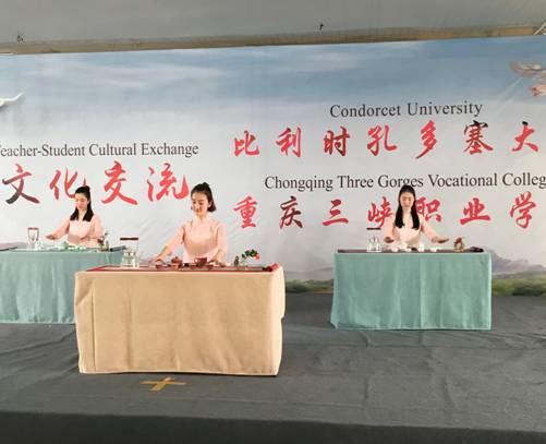 2016级旅游管理专业学生在比利时孔多塞大学交流中茶艺表演